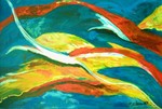 Abstracte schilderijen met hier en daar een herkenbare vorm